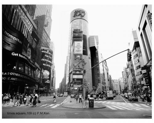 海外の街と東京の街のシティスケープをデジタルカメラで収め、合成加工を施して新しい風景写真として再生する。それが「cross point」シリーズです。この中では、東京のストリートが世界各地と隣り合わせになり、街や人々は時空をさりげなく交差して、異文化は互いに流れ込み合います。「それぞれの国や文化から生まれたものが海を越え融合し、ユニバーサルな価値が日常に溢れている」、P.M.Ken氏はそんな実態を象徴的に、リアルな視覚体験として具現化しようとしました。