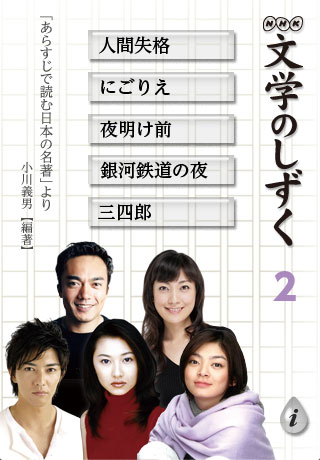 『NHK 文学のしずく 2』には、『人間失格(太宰治)』、『にごりえ(樋口一葉)』、『夜明け前(島崎藤村)』、『銀河鉄道の夜(宮沢賢治)』、『三四郎(夏目漱石)』の5作品を収録しています。