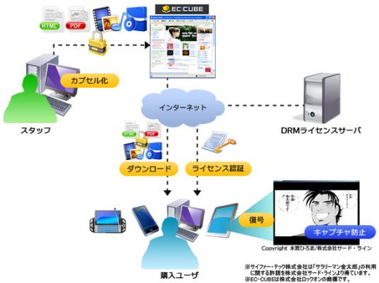 楽天株式会社様や株式会社ベネッセコーポレーション様などのデジタルコンテンツ配信事業者にDRM*3サービスを提供しているサイファー・テックと、ECオープンソースでトップクラスのシェアを誇るEC-CUBE*4のパートナー最高位であるプラチナパートナーであり、ECオープンソース構築のエキスパートであるエスキュービズムは業務提携し、ECオープンソースを利用し構築コストの削減や安全なデジタルコンテンツ流通を実現したデジタルコンテンツ販売に特化したEC構築ソリューションのワンストップでの提供を開始します。