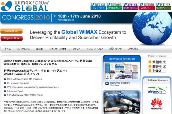 会議:「WiMAX Forum Congress Global 2010 (2010年WiMAXフォーラム世界会議)」