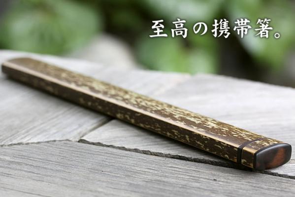 の模様にあわせて木材部分は高級感のある黒檀を使用、箸箱のアクセントとなっ