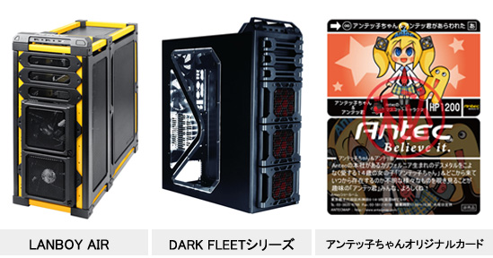 秋葉原のイベント参加店舗にて、対象期間中にAntec製品(ケース・電源・ファン・その他)をご購入いただき、購入レシートをAntecショールームにお持ちいただくと、くじ引きに参加できます。 LANBOY AIRやDARK FLEETシリーズなど未発売製品を含む豪華景品が当たります。くじ引き参加者全員にアンテッ子ちゃんオリジナルカードをプレゼントいたします。