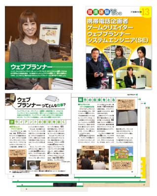 「職場体験完全ガイド 13 ~ IT産業の仕事 ~」では、携帯電話企画者・ゲームクリエイター・ウェブプランナー・システムエンジニアを中心にIT産業の仕事内容の解説や各職種を目指す子どもたちへのメッセージを掲載しており、その中の「ウェブプランナー」の仕事を紹介するにあたり、弊社スタッフが取材を受け、掲載されました。