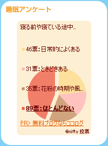 「寝る前や寝ている途中に鼻づまりが気になることはありますか?」という質問に対する回答を、ユーザーに4つの回答(「日常的によくある」「ときどきある」「花粉の時期や風邪をひいたときにある」「ほとんどない」)から選択してもらう