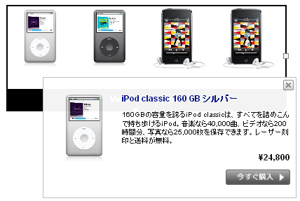 商品プレビュー機能の掲載例: