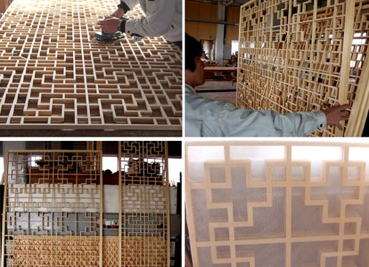 しかし、従来の中国格子を製作するには、高度な木工技術を使う必要があり、部材寸法が統一されたものでないとコストが高くつき、また納期が数ヶ月かかるという現実的な問題がありました。