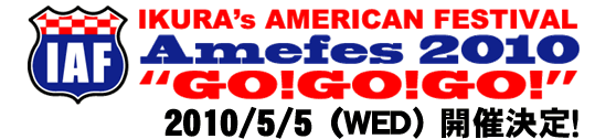IKURA’s AMERICAN FESTIVAL 「Amefes 2010 “GO! GO! GO!”」は、日本で最初の本格的なドラッグレースを含むカーイベントとして91年にスタートしたSUPER AMERICAN FESTIVALをパワーアップさせた新フェスティバル。レースあり、パレードあり、ライブあり…と盛りだくさんの夏の野外イベントだ。 SUPER AMERICAN FESTIVALでは、毎年全国から10000人を上回る数をコンスタントに動員し、富士スピードウェイで行われるイベントではトップ3に入る動員数を誇ります。昨今では、家族連れも増加しており、子供連れで訪れる来場者が急増。幅広い年代に楽しまれているカーフェスなのです。