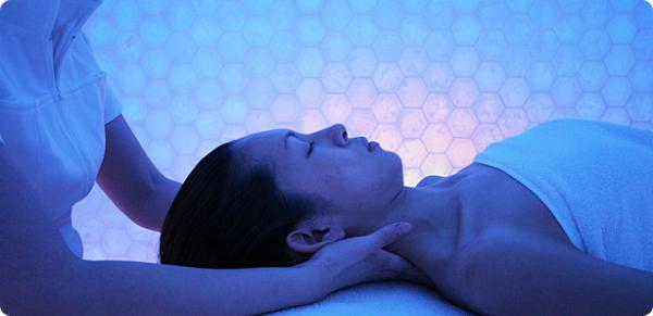 ・美容、リラクゼーション効果のあるLEDライトカラーセラピーを受けながら施術。