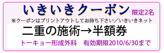 今回、二重施術半額割引キャンペーンを実施します。2010年6月30日まで。