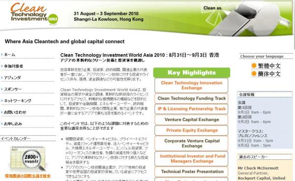 「Clean Technology Investment World Asia 2010」の情報を提供するとともに、会議の参加のお申し込みを承っております。