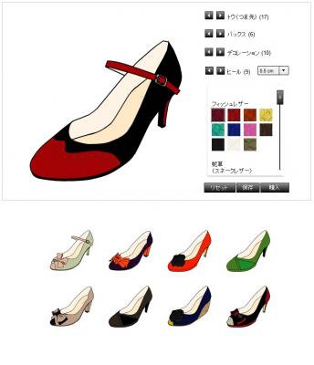 ヒールの高さ、素材、色、形、デコレーションも、自由自在に変えることができ、3兆通り以上の異なる靴のデザインをすることが可能です。