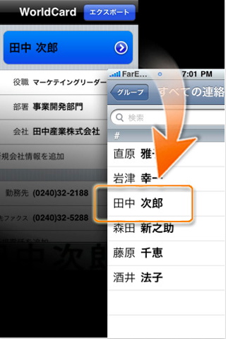 ・弊社のiPhoneアプリ、WorldCardContactsと連携して名刺のイメージ管理をすることができます。