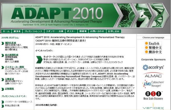 会議:「ADAPT 2010: Accelerating Development & Advancing Personalized Therapy」
