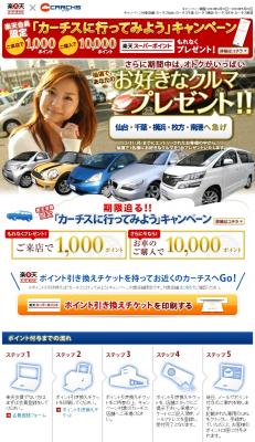 対象店舗への”ご来店”と、”お車のご購入”それぞれで楽天スーパーポイントをプレゼント致します。