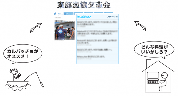 夕市会サイトの新着情報を即座にツイッターに反映できるようになりました。消費者は捕れた魚の情報をツイッターを通してリアルタイムに知ることができ、即注文ができるようになりました。