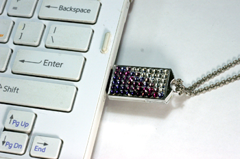 「デジタルジュエリー」は、スワロフスキーで飾りキラキラペンダントになったUSBメモリーです。