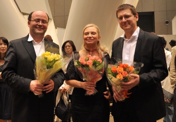 ショパンの曲を演奏したピアニスト達、フィリップ・ヴォイチェホフスキ、ユスティナ・ガラント・ヴォイチェホフスカ、クバ・ルボヴィッチ(左から)