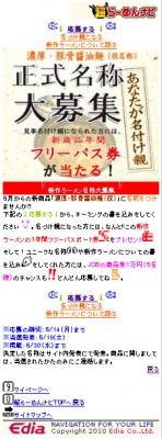今回、当サイトのラーメン達人である、はんつ遠藤氏の監修のもとに開発され、4/28(水)から関東駅前型店舗(計6店舗:恵比寿・お台場・駒込・木場・新宿・五反田)の「よってこや」で発売されている「濃厚・豚骨醤油麺(仮名称)」の正式名称を、当サイト内で募集します。