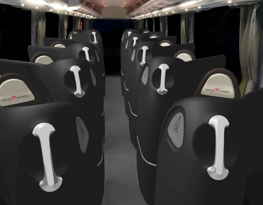 「少し費用がかかっても時間を有効に活用できる高速バスを利用したい。」といった27歳~40歳のお客様向けに、車内のデザインはシンプルで落ち着いた色調でコーディネートされています。シェル内には、靴収納スペース、荷物収納スペース、ミラーが新たに設置され、便利な空間が確保されています。足元は男性でも足が前方座席につかえることなく伸ばすことができ、寛ぎの時間が過ごせます。また、「シアター」シートで好評の移動空間を楽しめるVODシステムも導入され、映画、音楽、ゲームが楽しめます。