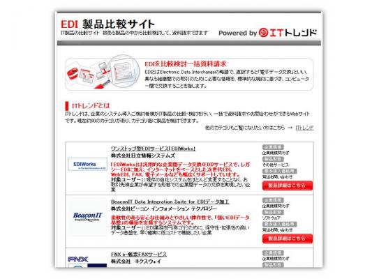 企業の担当者が、商取引における情報伝達の効率化や、事務工数・人員の削減を図る際に必要となる、EDI製品の比較・検討ができる便利なサイトです。