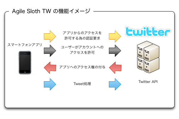 今日において、多くのスマートフォンアプリケーションがTwitterサービスとの 連携を必要としています。アプリケーション制作者は、Agile Sloth TWを使用することにより、Twitter APIとの連携の知識を必要とする事無く、簡単かつ迅速にTwitter連携機能を自身のスマートフォンアプリケーションに組み込む事が出来ます。