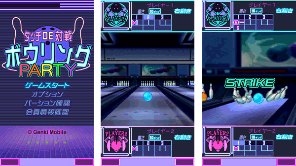 『タッチDE対戦ボウリング-PARTY-』は、docomoのiアプリタッチ(R)と直感ゲーム(R)の機能を搭載した、新感覚の対戦型ボウリングゲーム第2弾です。携帯電話同士のFeliCa(R)マークを重ねるだけで、Bluetooth(R)対戦のペアリングが完了するスマートさに加え、ゲームの操作もボウリングの球を投げるように携帯電話を振るだけで投球できるため、どなたでも簡単且つ、臨場感たっぷりにお楽しみいただけます。