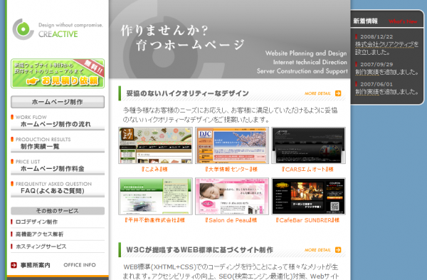 もちろん見た目の綺麗さだけではなく、目には見えない部分(XHTML+CSS)にもこだわり、