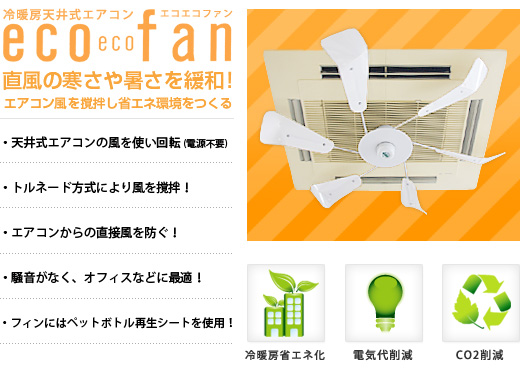 暖房天井式エコのecoエコファンは直風の寒さや暑さを緩和、エアコン風を撹拌し省エネ環境を作ります。