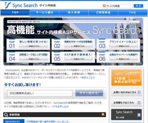 ・サイト内検索「SyncSearch」 詳細URL:http://www.syncsearch.jp/