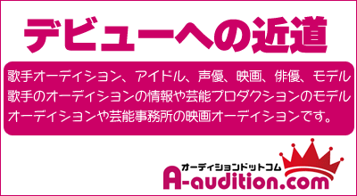 全国(札幌・東京・名古屋・大阪・京都・神戸・広島・福岡・沖縄)声優、俳優、アイドル、ダンス、映画、子役、子供の事務所教室や芸能プロダクションや芸能事務所の雑誌、テレビの声優やモデルでJJやCANCAMやVIVI等に活躍したい男女は今すぐ応募!芸能プロダクションや音楽や音楽プロダクションなどダンススタジオ事務所の音楽、アニメ、音楽、バンド、声優、子役、子供、ダンス、映画、CMや音楽、バンド、声優、映画、女優、俳優、ミュージカル、子役、子供、ダンスダンサーになりたい方むけのオーディションサイト。