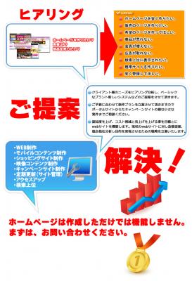 メールにて、ヒアリングを行い、ホームページをリニュアルするべきか、SEO対策(ヤフー、グーグル)の検索エンジン対策をするべきか、商品構成を変えた方が良いかなど、ご提案をさせていただきます。