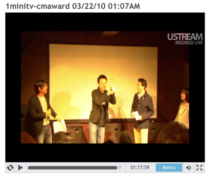 ↑USTREAMのスクリーンショット。http://ustream.tv/channel/1minitv-cmaward