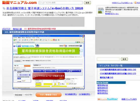 「動画マニュアル.com」(運営:株式会社ウェブデモ)は2010年6月より、社会保険労務士向けe-Gov