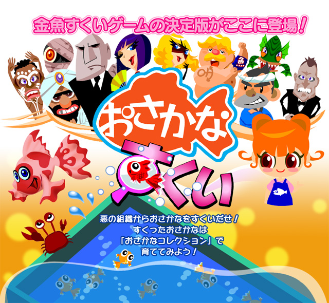 弊社がサービスしているお魚育成ソーシャルゲーム『おさかなコレクション』と連動できるのが特徴で、『おさかなすくい』で入手した「さかな」は『おさかなコレクション』にて飼育することができます。
