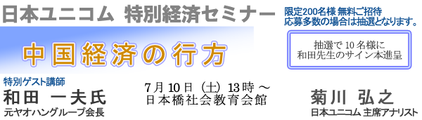 いまだに中国に太いパイプを持ち、中国市場の酸いも甘いも知りつくした彼に、中国経済の行方をご講演頂きます。