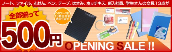オープン記念セールとして、「100個限定/文具13点お買い得パック」(500円)を好評販売中です。本店ショップで即日完売となりました人気企画の色違いバージョンで、現在のところ、オフィス・デポ楽天市場店のみでお求めいただけるチャンスです!