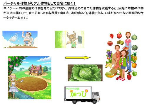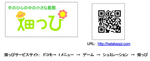 株式会社エルディ(本社:東京都目黒区東山1-21-13ホメストイーストヒルズ104、代表取締役:葛島 明奈)は、全国農業青年クラブ連絡協議会の協力を経て(http://www.zenkyo4h.org/index.html)6月7日午前9時より株式会社NTTドコモの公式メニューにて仮想(バーチャル)農園で野菜や果物などを育て、収穫すると、本物の作物が自宅に届く農業体験ゲーム「畑っぴ」のサービスを開始いたしました。