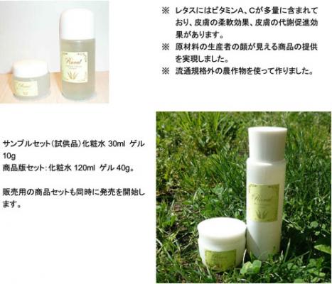 今回グランドオープンのために生産農家と共同でオリジナルレタス化粧品を作りました。