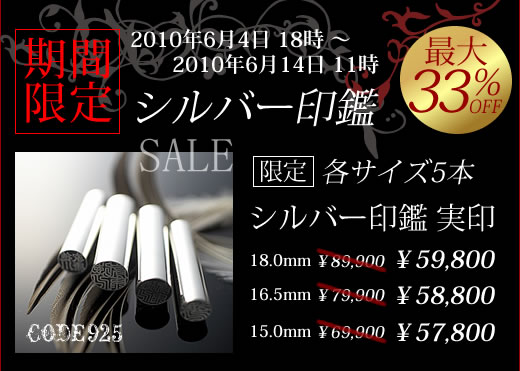 シルバー印鑑専門店「CODE925」http://www.code925.com/で販売中の実印3サイズを各5本、最大33%OFFの大幅値下げ価格で販売中です。