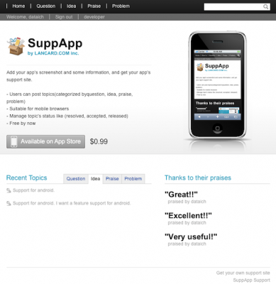 iPhoneから始まったモバイルアプリケーションブーム。多くの方々が続々と開発に参入しています。ユーザからの評価が高いアプリケーションの共通事項として、「ユーザの声をよく聞いている」という事が挙げられます。SuppAppは「ユーザの声を聞く」ことを強力に支援します。