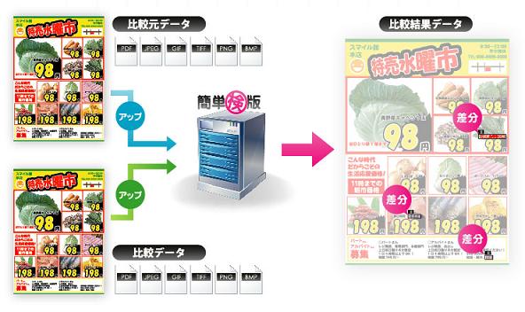 TIFF、PNG、BMP)を比較して相違箇所を抽出するサーバ運用型のデジタル検版システムで、