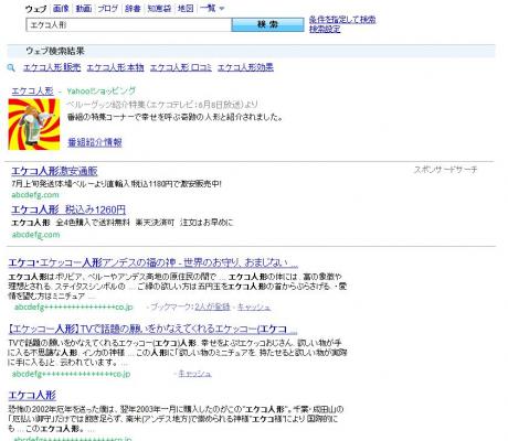 <Yahoo! JAPANにおけるダイレクト検索 商品名での検索結果イメージ>になります。