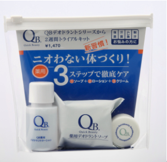 そこで、QB薬用デオドラントシリーズから、ニオイに対するトータルケアとして新発想のデオドラント『QBデオドラント トライアルキット』を新発売致します。ニオイの原因となっている雑菌の繁殖を、1,2,3STEPの徹底した工程を組むことで汗と雑菌の結合自体を防ぎ、ニオイの原因を元からブロック。使い方は簡単だから毎日きちんと続けられる、新発想のデオドラントケア習慣で、ニオわない体づくりを目指しませんか。まずは、2週間その効果の高さをお試しください。