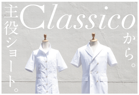 クラシコ(株)は、スタイリッシュで清涼感のある新しい半袖白衣「ショートスリーブダブルコート/メンズ http://www.clasic.jp/goods/shortdoublecoat.htm 」 「ショートスリーブワンピースコート/レディース http://www.clasic.jp/goods/shortonepiececoat.htm」 を発売しました。