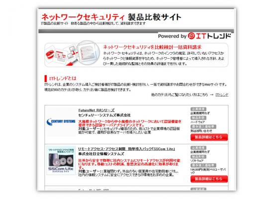 企業の担当者が、リスク管理の一環として不正アクセスの防止や情報漏洩の阻止、システムの安定性保持のための防衛策を検討する際に、ネットワークセキュリティ製品の比較・検討ができる便利なサイトです。
