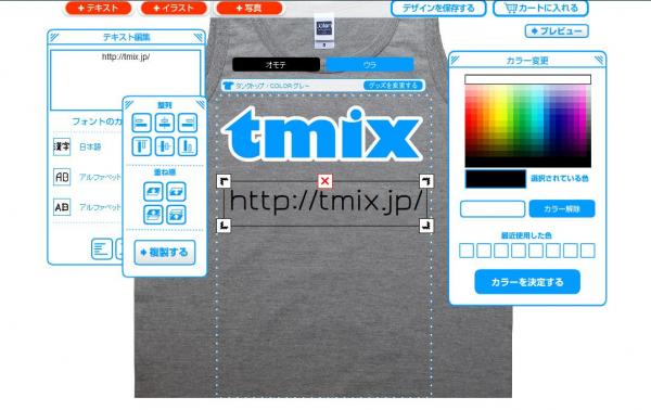 ウェブでかんたんデザイン!オリジナルTシャツデザインサイトtmix(ティーミックス)