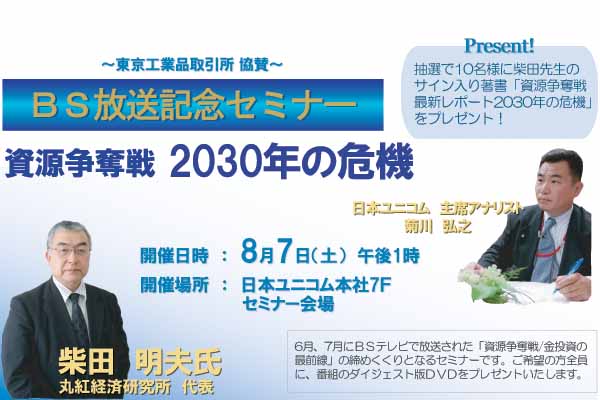 日本ユニコム主催 : BS放送記念セミナー 資源争奪戦 2030年の危機