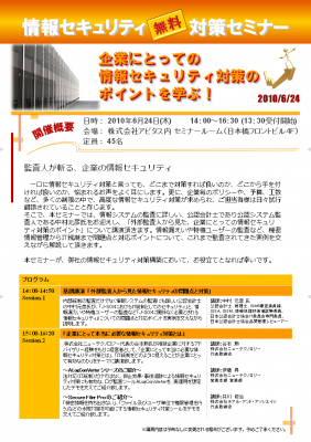 そこで、本セミナーでは、情報システムの監査に詳しい、公認会計士であり公認システム監査人である中村元彦氏をお迎えし、「外部監査人から見た、企業にとっての情報セキュリティ対策のポイント」について講演頂きます。情報漏えいや特権ユーザーの監査など、機密情報管理からIT統制まで問題点と対応ポイントについて、これまで監査されてきた実例を交えながら解説して頂きます。