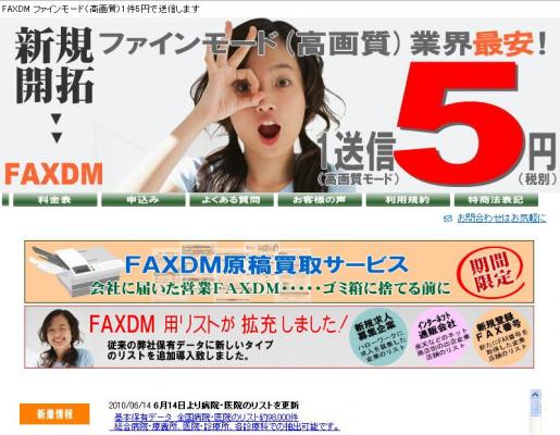 ファインモード画質でのFAXDM一斉送信サービスを1枚5円でご提供させて頂いております。