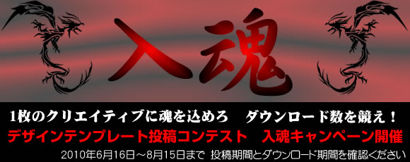 入魂キャンペーンは、モバイル専用のホームページ作成サービスピッとリンクでユーザに提供されるデザインテンプレートを公募するコンテスト形式のキャンペーンです。参加資格を設けていないため、プロもアマも同じ条件で腕試しすることができます。